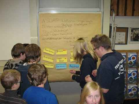 Auch eine kleine "Hausaufgabe" haben die Jugendlichen mit nach Hause genommen. Ein Teil der Gruppe wird versuchen im Internet etwas zum Thema herauszufinden. Der andere Teil der Gruppe wird versuchen in verschiedenen Schulbüchereien etwas zu finden und ein Interview mit einer Lehrerin steht auch auf dem Plan. | ||||||||||||||||||||||||||||||||||||||||||||||||||||||||||||||||||||||||||||||||||||||