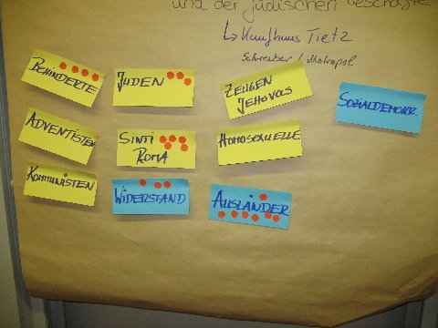 Auch eine kleine "Hausaufgabe" haben die Jugendlichen mit nach Hause genommen. Ein Teil der Gruppe wird versuchen im Internet etwas zum Thema herauszufinden. Der andere Teil der Gruppe wird versuchen in verschiedenen Schulbüchereien etwas zu finden und ein Interview mit einer Lehrerin steht auch auf dem Plan. | ||||||||||||||||||||||||||||||||||||||||||||||||||||||||||||||||||||||||||||||||||||||
