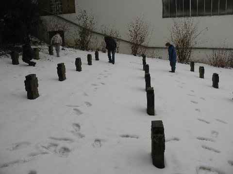 November 1944 als Todesdatum. Mehr Informationen waren im Stadtarchiv auch in den Gräberlisten leider nicht zu finden. Aber eine Karte mit Baracken der Firmen, die in dieser Zeit Zwangsarbeiter beschäftigten, zeigte der Gruppe, wie viele Arbeiter in dieser Zeit aus ihrer Heimat zur Zwangsarbeit verschlepp wurden. Insgesamt waren nicht sehr viele Informationen zu bekommen, für "unseren" Stolperstein reichen sie allerdings aus. Und so werden wir am 11. Februar einen "Stolperstein" für Nadja Potemkina am Bunker Kaisergarten setzen. | ||||||||||||||||||||||||||||||||||||||||||||||||||||||||||||||||||||||||||||||||||||||