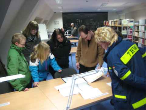 Die Spuren von Nadja Potemkina führte die THW - Jugend Siegen auch ins Stadtarchiv Siegen. Hier wurde die Gruppe von einem Mitarbeiter empfangen und bekam zuerst eine kleine Einweisung ins Archiv. Auch durfte die Gruppe einen Blick in das Lager des Archivs werfen. Hier lagern Dokument, Urkunden und Zeitungen aus den letzten Jahrhunderten. Eine gleichmäßige Temperatur und Luftfeuchtigkeit sorgt für eine gute Lagerungsatmosphäre für die vielen Dokumente. Im öffentlichen Teil des Archivs stehen dem Besucher jede Menge Bücher und Zeitungen über die Geschichte des Siegerlandes zur Verfügung. | |||||||||||||||||||||||||||||||||||||||||||||||||||||||||||||||||||||||||||||||||||||